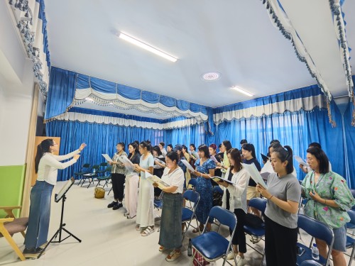 市小學(xué)音樂研訓(xùn)教師薛金對(duì)本學(xué)期合唱團(tuán)培訓(xùn)工作進(jìn)行了全面總結(jié),并部署假期自主練習(xí)內(nèi)容。合唱團(tuán)女高音聲部長文波老師帶領(lǐng)全體團(tuán)員,結(jié)合《在太行山上》《明天會(huì)更好》兩首混聲作品展開針對(duì)性訓(xùn)練,重點(diǎn)強(qiáng)化氣息的穩(wěn)定支撐、聲音位置的統(tǒng)一性以及聲部間的和諧融合。