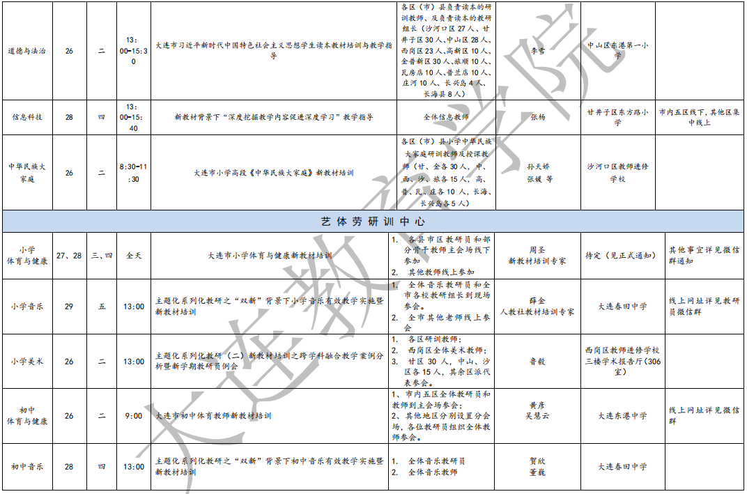 藝體勞研訓(xùn)中心8月教研活動計劃