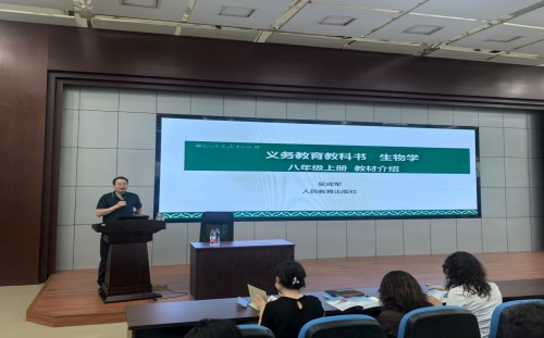人民教育出版社吳成軍老師進(jìn)行專題講座,為教材落地保駕護(hù)航。吳老師在講座中指出,新教材優(yōu)化單元架構(gòu),新增“生態(tài)安全”章節(jié),聚焦人體生理與健康、生物與環(huán)境核心主題。大連教育學(xué)院李炎老師分享了“國(guó)家中小學(xué)智慧教育平臺(tái)”的使用心得,特別關(guān)注了新增的人工智能教育板塊的功能。