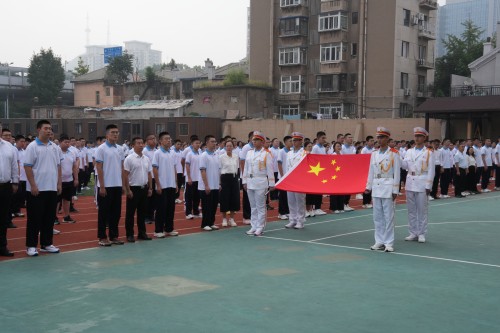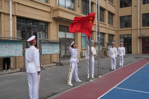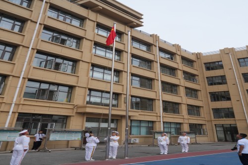 清晨,學院師生齊聚操場,莊嚴肅立。英姿颯爽的國旗護衛(wèi)隊邁著整齊有力的步伐,護送鮮艷的五星紅旗走向升旗臺。伴隨著激昂的《義勇軍進行曲》,全體師生行注目禮,高唱國歌,五星紅旗冉冉升起,迎風飄揚。