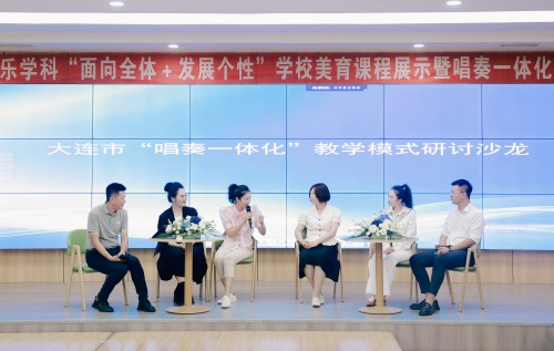 本次教學(xué)研討會(huì)涵蓋學(xué)校美育課程成果展示、專題講座等內(nèi)容。與會(huì)人員觀看了海灣小學(xué)全員口風(fēng)琴演奏及學(xué)生藝術(shù)社團(tuán)展演,觀摩了海灣小學(xué)呈現(xiàn)的優(yōu)秀音樂教學(xué)課例?;顒?dòng)首次設(shè)立“唱奏一體化”教學(xué)研討沙龍,由市小學(xué)音樂研訓(xùn)教師主持,普蘭店區(qū)教研員、海灣小學(xué)校長、教師、家長以及中山區(qū)桃源小學(xué)教師代表探討美育實(shí)施路徑。